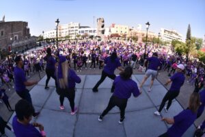 Con el objetivo de promover la reflexión, la convivencia y la construcción de una sociedad libre de violencia, autoridades del Gobierno de Irapuato, a través del Instituto de las Mujeres Irapuatenses (Inmira), llevaron a cabo la Mega Clase ‘Ritmo Violeta’ en la plaza de Los Fundadores, en un ambiente familiar y de convivencia.